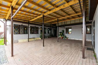 Просторный двор, навес для автомобилей, ухоженная территория, а вокруг чистый воздух и тишина.