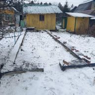 Участок с домиком 3*4, сарай, туалет. Есть печь. На участке два фундамента под дом 6*6, баню с беседкой 10*3, 4. Рядом с участком скважина с питьевой чистой водой.