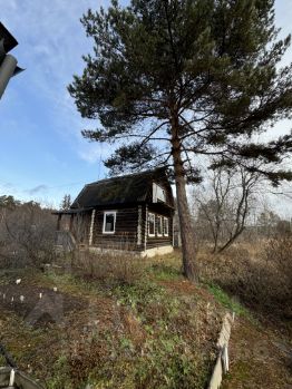 На участке двухэтажный бревенчатый дом, зарегистрирован. Большие плодоносящие деревья: яблоня, слива, вишня. Есть дополнительная постройка под баню / сарай. Каркас для теплицы. Участок отмежеван 5,5 соток, но в реальности намного больше