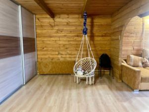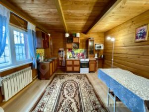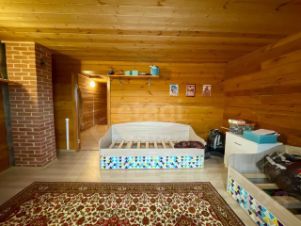 Продается современный дом из бруса 2019 года постройки площадью 159 м²., полноценных два этажа. Конструкция отличается энергоэффективностью: внешнее утепление 50 мм, вентиляционный зазор и облицовка кирпичом. На первом этаже расположены просторная кухня-гостиная, санузел с душевой кабиной, котельная и встроенный шкаф-купе. Второй этаж включает три изолированные комнаты, отдельный туалет и холл, который можно использовать как спортивную или игровую зону. Основной источник тепла — кирпичная печь-камин со встроенным котлом, распределяющим тепло по радиаторам по всему дому.