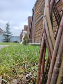 На участке выполнен ландшафтный дизайн со стороны входной группы, посажены деревья и кустарники: голубая ель 4м, берёза, можжевельник, плетёная ива, барбарис, спереи, 2 вишни, 2 смородины, крыжовник, малина, яблоня, роза на штамбе. Остальная территория покрыта газоном