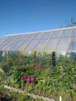 Участок полностью разработан и удобрен, на нём разместились 2 теплицы 3х6 и богатый сад с яблонями разных сортов, сливой, вишней, крыжовником, смородиной, малиной и клубникой.