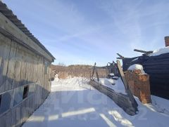 На участке расположены: баня действующая, сруб бревенчатого дома без крыши и верхнего венца сруба (пострадал в пожаре), требует восстановления.