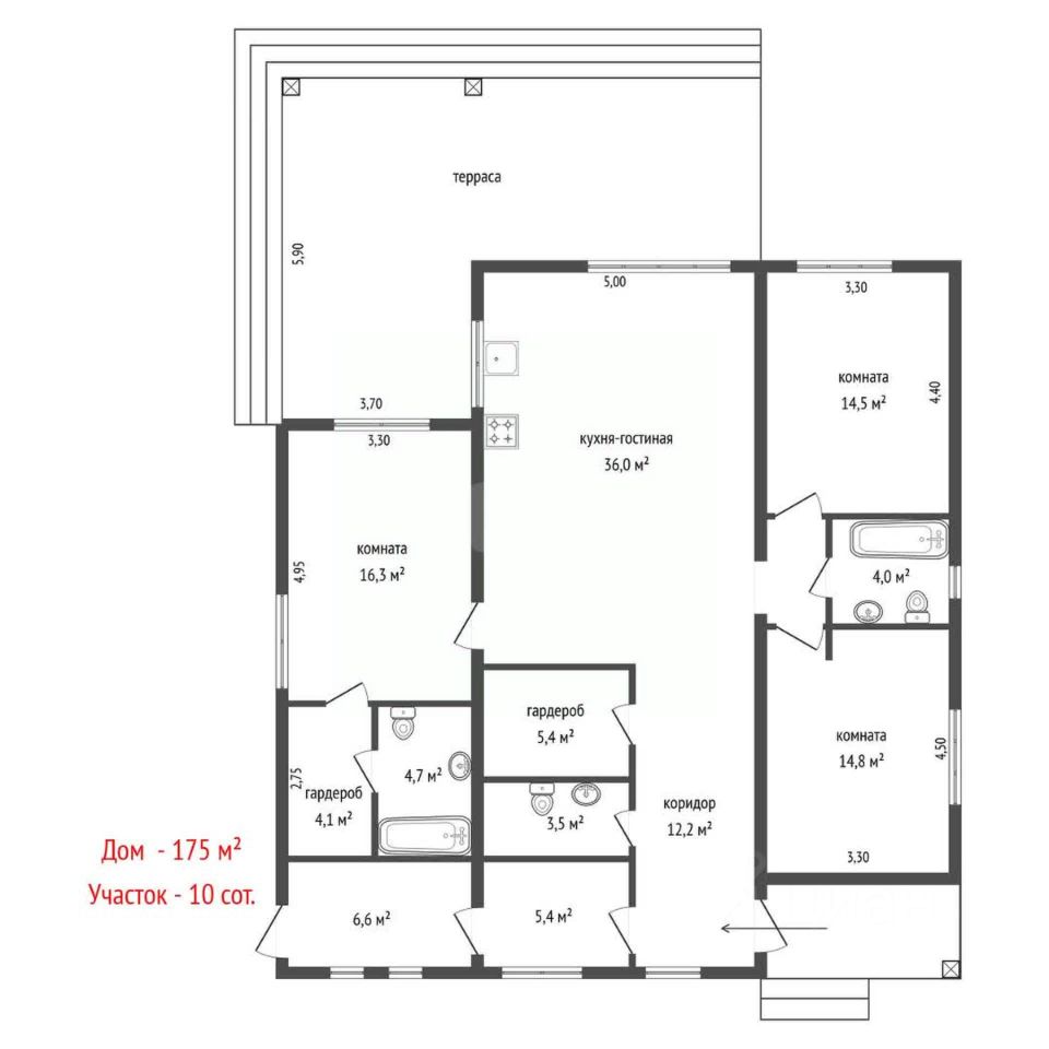 Продуманная планировка, до мелочей. Технические помещения выделены в отдельную зону. Просторная кухня-гостиная, три большие светлые комнаты, одна из них мастер-спальня. Просторная терраса для отдыха. Выход на терассу из кухни-гостиной и мастер-спальни.