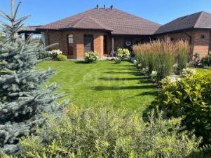 Участок благоустроен по индивидуальному ландшафтному проекту с дорожками, освещением и зелеными насаждениями. Здесь создано все для отдыха: баня, зона барбекю с беседкой, детская площадка с бассейном и теплица с системой автополива.