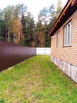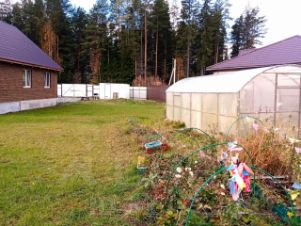 Особенности участка: Большой, плоский земельный участок, покрытый аккуратным газоном. Здесь установлена теплица и построена современная баня (2021 года).