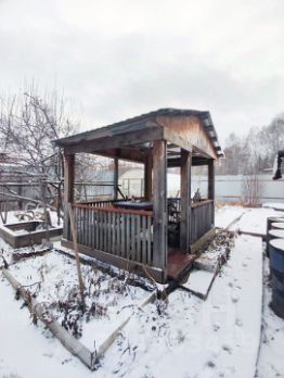 На участке выстроена баня, на бутовом ленточном фундаменте размером 3*4, есть зона отдыха с беседкой, две теплицы (в очень хорошем состоянии), уличный туалет. Залит фундамент для гаража.
