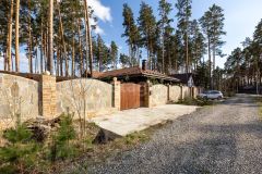 Участок огорожен капитальным забором из кирпича и камня, оснащен автоматическими воротами. Вся территория находится под видеонаблюдением.