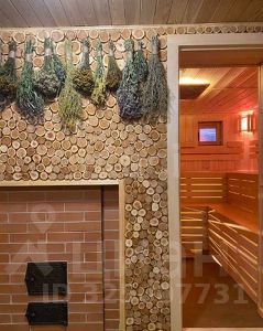 На территории возведена двухэтажная баня-гостевой дом площадью 80 кв.м в стиле русской избы с настоящей печью.