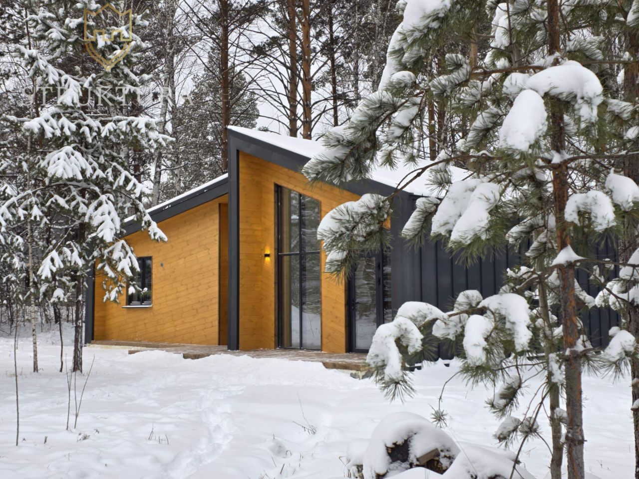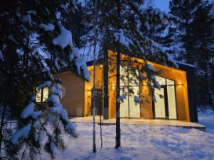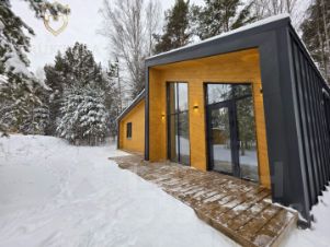 Здания возведены на монолитном фундаменте, гарантирующем долговечность и устойчивость конструкции. Дома энергоэффективные, в них тепло зимой и прохладно летом. Фасад оформлен в современном стиле с использованием металла и натуральной древесины. Контрастное сочетание чёрного цвета и тёплых оттенков дерева создаёт благородный визуальный акцент и соответствует вечному тренду загородной архитектуры. Такая отделка выглядит не только стильно, но и рассчитана на долгие годы эксплуатации. Особую атмосферу и обилие естественного света обеспечивают панорамные витражные окна в алюминиевом профиле. Они не просто украшают фасад — благодаря им пространство наполняется светом, а из комнат открываются живописные виды на окружающую природу, меняющей краски с каждым временем года. Панорамное остекление визуально расширяет границы интерьера и создаёт ощущение единения с ландшафтом.