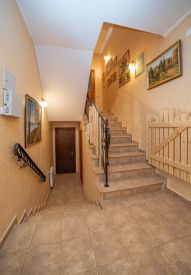 -каменная лестница на средний этаж и на второй, капитальная. Ручная ковка