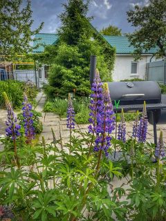 На участке расположен каркасный бассейн Intex диаметром 5 метров (под ним сделано крепкое бетонное основание). Участок с ландшафтным дизайном: газоны, множество многолетних цветущих растений, кусты гортензии и роз, две плодоносящие яблони, роскошная ель. Зона отдыха с мангалом. Участок украшен большим количеством светодиодных ламп на солнечных батареях. Все это остаётся в подарок новому владельцу!