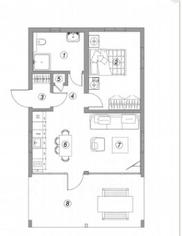В спальне 13,5 м2 легко почувствовать умиротворение провожая день под лучами закатного солнца. Комната имеет вместительный шкаф, выполненный в единой концепции спальни.