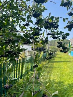 Участок отличается развитой инфраструктурой: плодоносящие яблони, кусты смородины, крыжовника, жимолости, черевишни, черноплодной рябины, а также грядки с клубникой и декоративными многолетними растениями, включая гортензии. Удобная транспортная доступность обеспечивается близостью остановки "Садоводы", а подъезд к участку возможен как со стороны леса, так и с организованной стоянки для автомобиля.