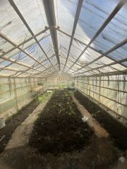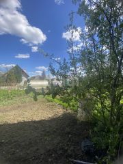 На участке сарай для дров и инвентаря, теплица, летний душ.