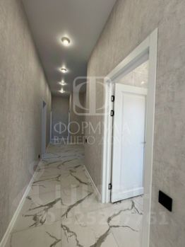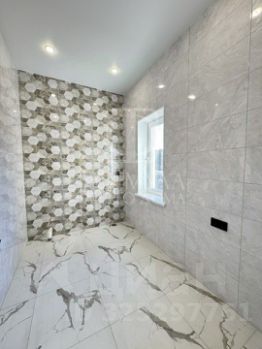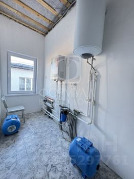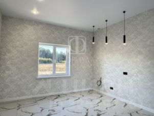 На полу керамогранит, на стенах обои, межкомнатные двери, натяжные потолки со светильниками, в санузлах плитка, в котельной котел, водонагреватель, гараж с плиткой на полу и с автоматическими воротами.
