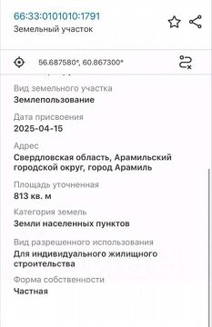 Земельный участок Ижс площадью 8,13 соток г. Арамиль, район Полетаевка, Сысертский район, Южное направление.