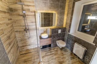 Выполнен качественный дизайнерский ремонт, установлена кухня со всей необходимой встраиваемой техникой. В доме так же остается вся новая мебель.