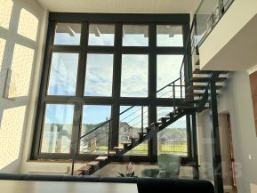 Дом двухэтажный со вторым светом и высотой потолков в гостиной 6 метров, огромные панорамные окна, балкон, терраса, гараж.