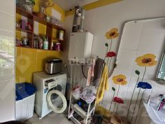 На первом этаже в доме расположены две большие комнаты, светлая кухня-гостиная, ванная и санузел. Также есть комната, которая используется как кладовка, при желании можно сделать спальню.