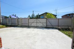 Установлены откатные ворота, забор по периметру, бетонированная площадка.
