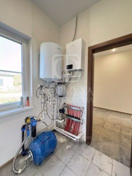 Отделка под ключ: на полу: в коридоре и санузле керамогранит, в спальнях, кухне-гостиной ламинат хорошего качества, на стенах обои под покраску, межкомнатные двери, натяжные потолки со светильниками, в основном санузле плитка, установлена вся сантехника, в котельной котел, водонагреватель.