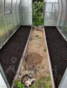 (разный сорт), 3 грядки клубники, под яблонями земляника. Грядки под посадку овощей.