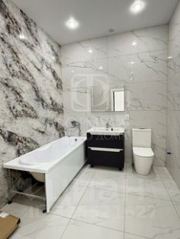 На полу керамогранит, на стенах обои, межкомнатные двери, натяжные потолки со светильниками, в санузлах плитка, установлена вся сантехника, в котельной котел, водонагреватель. Стоимость дома с отделкой "Под ключ" 8.800.000 р.