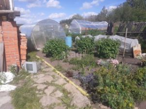 На участке растут плодово-ягодные кустарники, деревья, есть 2 теплицы, залита площадка для бассейна.