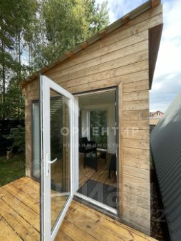 1 этаж: кухня-гостиная с выходом на террасу, санузел, спальня с двумя односпальными кроватями. Большие панорамные окна с видом на участок.