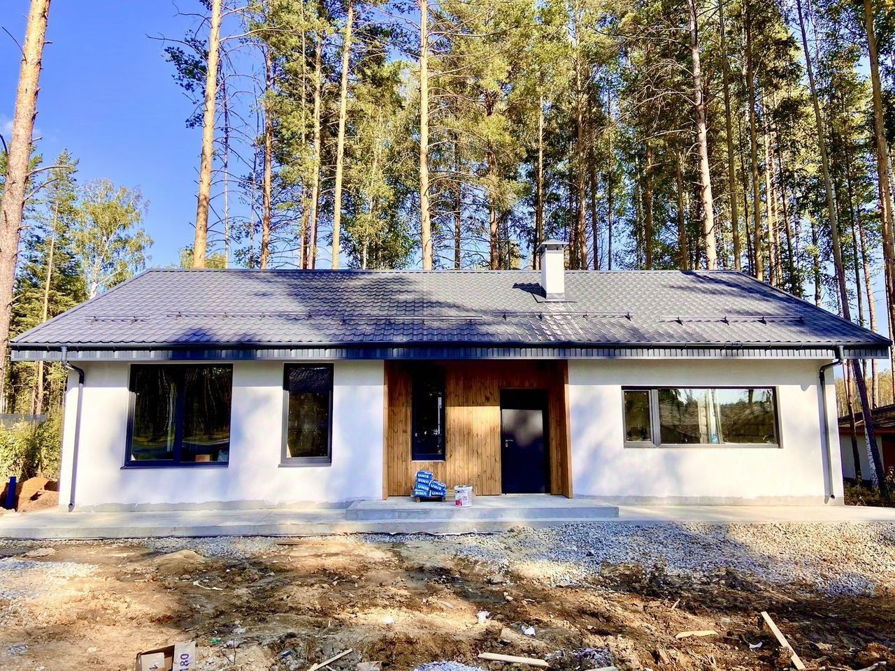 Готовый дом с отделкой под ключ и со всеми коммуникациями, сухой и ровный земельный участок в закрытом и охраняемом коттеджном посёлке с подземными коммуникациями(газ, интернет, электричество), система поддержания климата в доме с телефона, вентиляция, широкая утепленная бетонная отмостка, водосточная система, снегозадержание, асфальтированные дороги и многое другое!