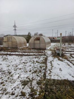 - Разработанный земельный участок с 2 большими теплицами, культурными деревьями, кустарниками и грядками.