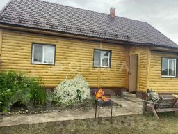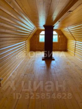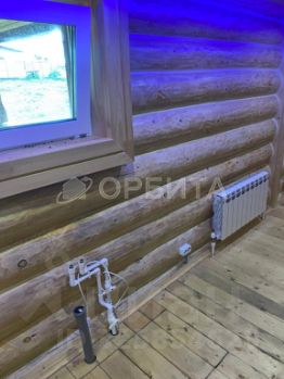 Дом построен из оцилиндрованного бревна.