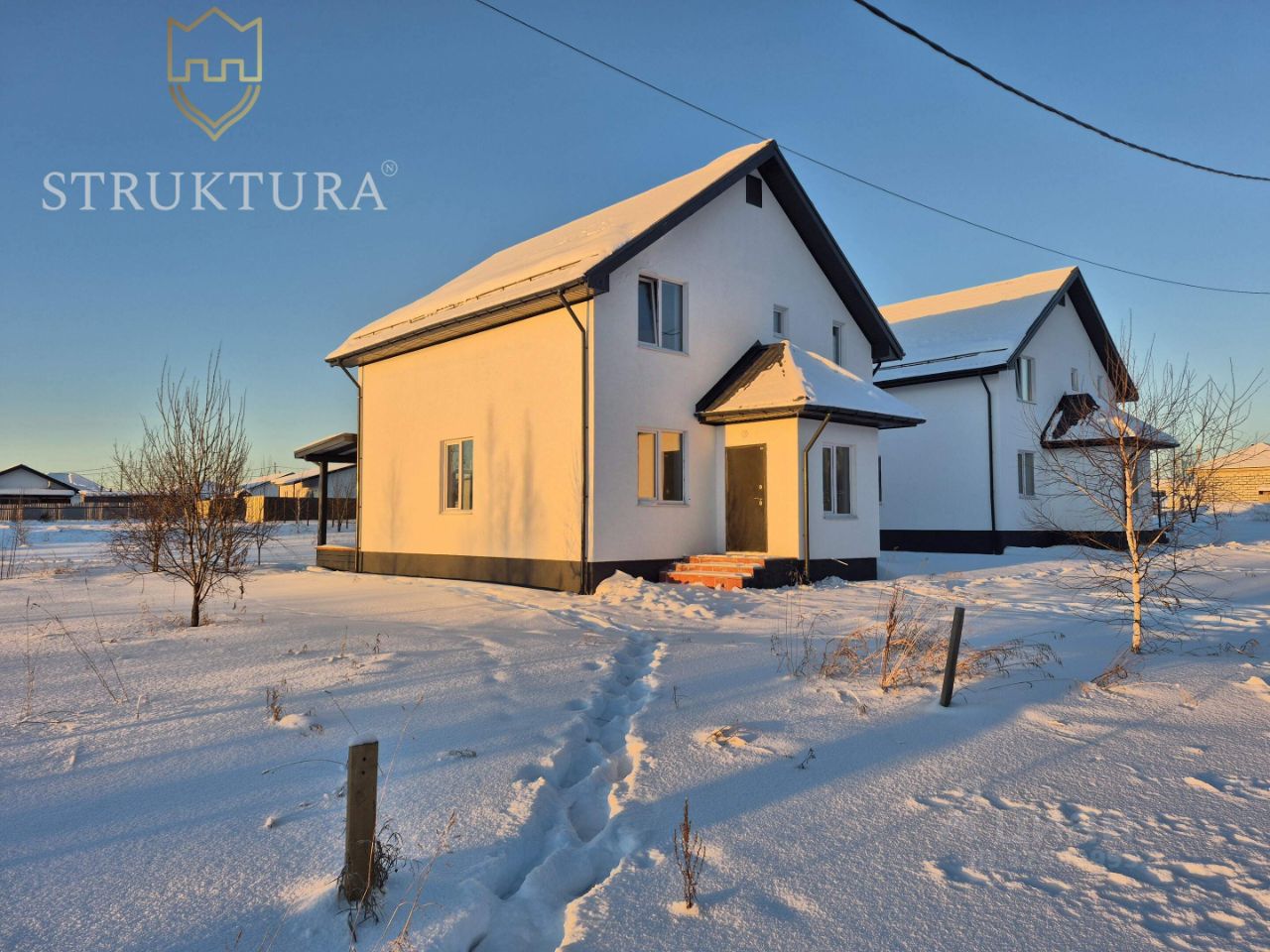 Дом построен из качественных материалов, стоит на высоком фундаменте. Стильный и практичный фасад отделан светлой штукатуркой в сочетании с декоративной плиткой серого цвета по периметру дома. Крыльцо оборудовано удобными ступенями. Крыша выполнена из кровли графитового цвета - всё это вместе придает дому стильный и современный внешний вид. Терраса находится под отдельной крышей, она также оборудована ступенями для удобства спуска и подъема. Оборудована водосточная система и снегозадержатели.