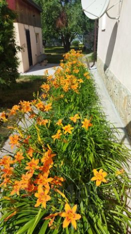На участке фруктовый сад из плодоносящих деревьев и куста рников. Два цветника с многолетниками. Запах сирени и черемухи дурманит весной. Две грядки с клубникой, грядка под зелень, парничек для помидоров и огурчиков.