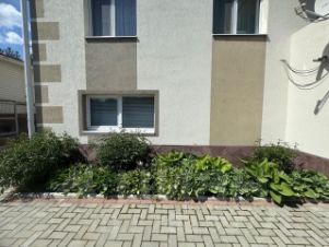 Сделан ландшафтный дизайн участка: зелёные зоны (газон) , ландшафтное освещение, ливневая система, деревья и кустарники, дорожки выложены брусчаткой