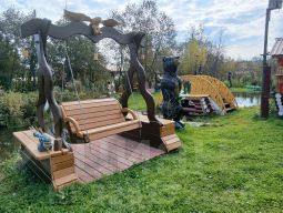 Декоративный мостик через речку создает невероятно живописный вид.