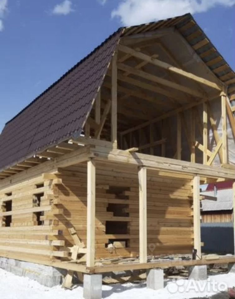 Дом построен из калиброванного бруса 150 (сосна, лиственница), 21 ряд. Размер дома 6*6 + терраса 2*6. Второй этаж мансарда 4*8. Фундамент ленточный.