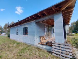 ДОМ: 2024 г. поcтpойки, строили для себя! Планировка: большая кухня - гостиная + 2 спальни + гараж!
