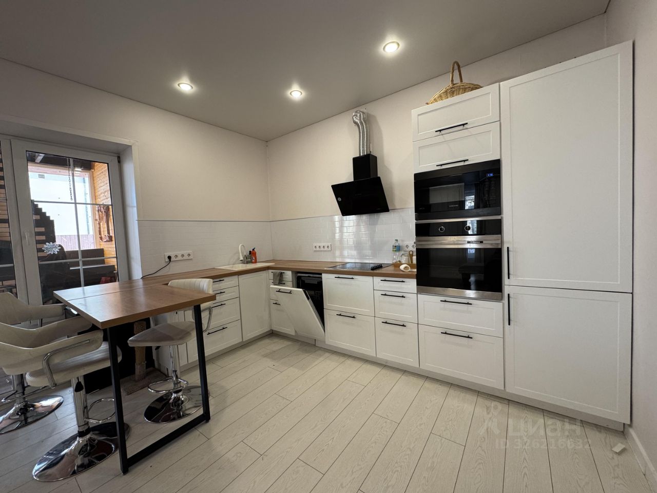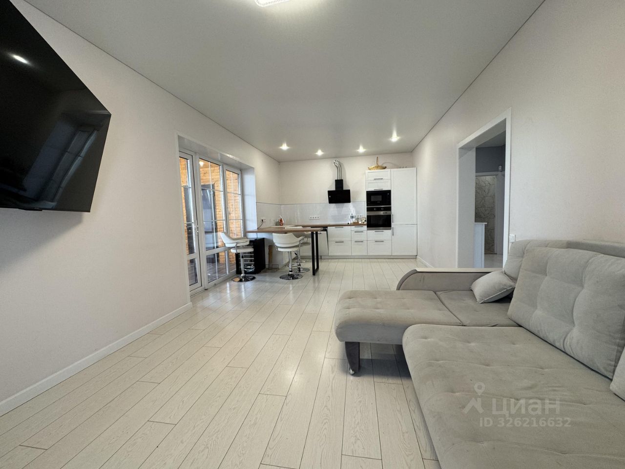 В доме остается - кухонный гарнитур с бытовой техникой (ПММ, плита с духовкой, вытяжка, холодильник, микроволновка), диван в гостиной.