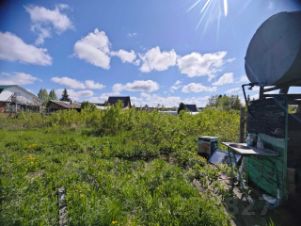 Участок огорожен, заведено электричество, скважина (15 метров), санузел "на улице". Из построек: сарай под инвентарь, баня (рабочая, можно переночевать), небольшая теплица.