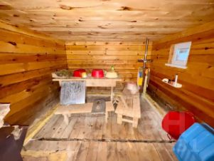 На территории участка имеется баня. Это решение оптимально для покупателей, рассматривающих загородную недвижимость для сезонного или постоянного проживания с минимумом соседства. Объект готов к просмотру и дальнейшему заселению.
