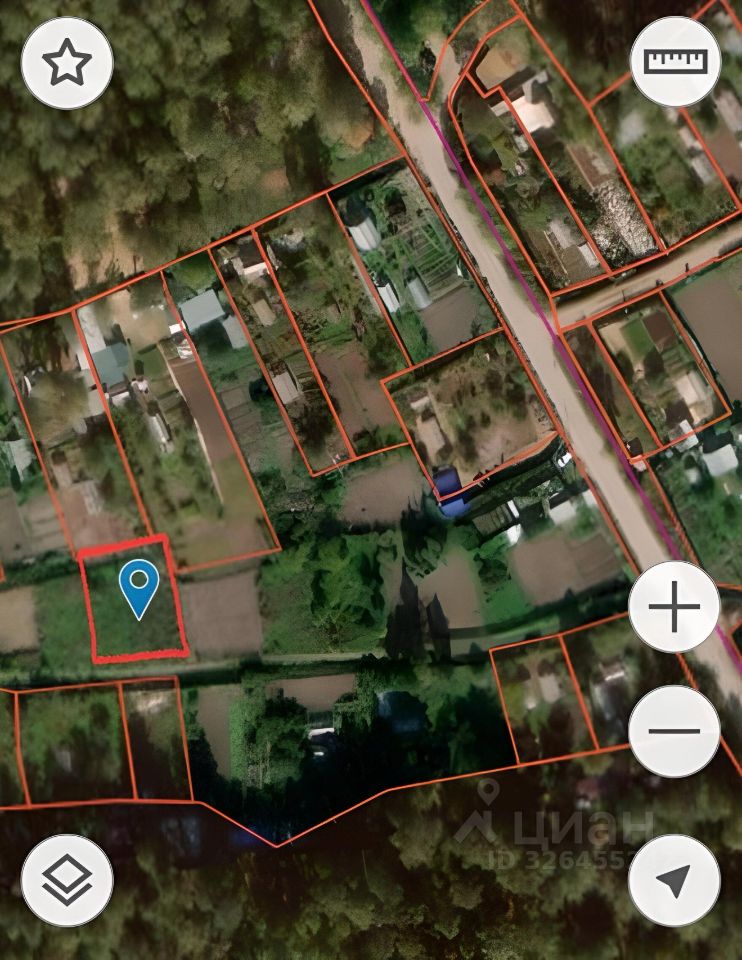 Участок ровный, без кустарников, есть пару молодых елочек на границе.