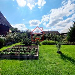 Участок разработан и ухожен, есть плодоносящие кусты и деревья.