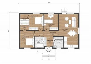 Общая площадь104 м2. Дом предназначен для постоянного проживания большой семьи.