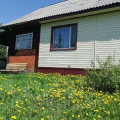 Площадь дома 74м2: состоит из кухни-гостиной и трех просторных комнат.Практически все,что есть в доме остается новому хозяину. Дом очень светлый, в нем круглый день солнечно. Установлены пластиковые окна,на стенах обои. Полы из натуральной доски,не скрипят. Потолки высокие-2,8м.Планировка удобная-нет ни одной проходной комнаты. По дому разведены трубы отполения, отапливается дом электричеством либо можно протопить дровами печь.Санузел совмещенный, размещен в доме. Есть подвал с отдельным входом, в котором есть место для хранения овощей,так же там размещен насос и система подачи воды из скважины; печь для отапливания дома.