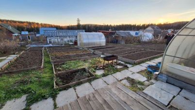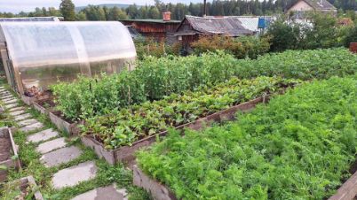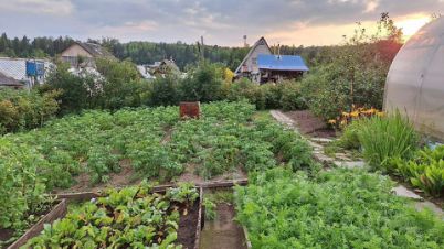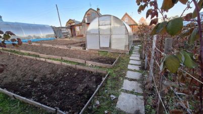ЗEMЛЯ УХОЖЕННАЯ, ГРЯДКИ ОГОРОЖЕНЫ.