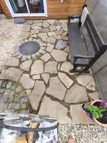 . мангальная зона (брусчатка из натурального камня, очаг из шамотного кирпича, печь под казан, декоративный дровенник)