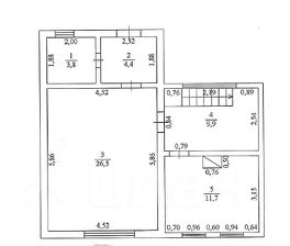 На первом этаже размещены: входная группа, котельная, гостиная 26,5 кв.м., кухня 9,9 кв.м. с печью и санузел.