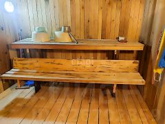 На участке добротная бревенчатая баня, сарай для хозяйственных принадлежностей, колодец.